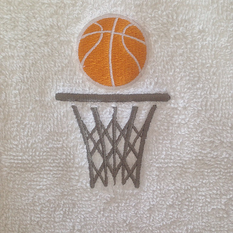 Handtücher oder Badetücher bestickt mit Basketball+Korb Stickmotiv und Namen/Text.